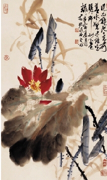 蒋频 风雨秋池 国画 75×48cm