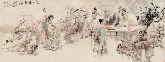 吴山明 孙恩道 高士听琴图 500×187cm