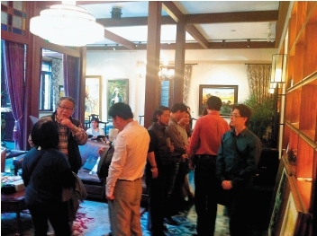 艺术家、企业家正在交流艺术 汪文斌/摄