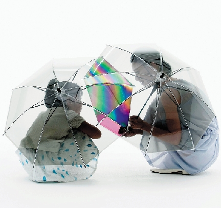 两把创意彩虹伞,撑起雨中美丽邂逅