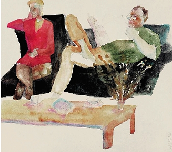 王彦萍 欧水彩 夫妻 28×20cm 纸本、墨和色 2000年