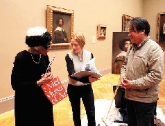 著名画家吴汉华与美国大都会临摹部主任罗德里格女士、美国艺术家在一起艺术交流。