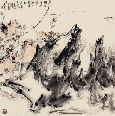 钟鸣 闲来垂钓碧溪上 68×68cm