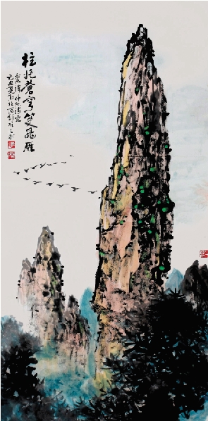 谢欣 柱托苍穹笑飞雁 138×68cm 2009年