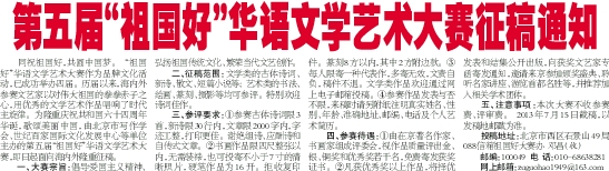 第五届“祖国好”华语文学艺术大赛征稿通知