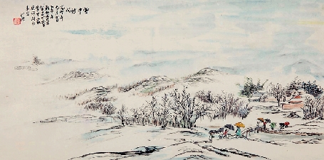 施明德 雪中访问 34×68cm
