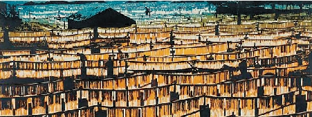 李建广 家乡的米粉干系列之金色的早晨 118×53cm 套色木刻