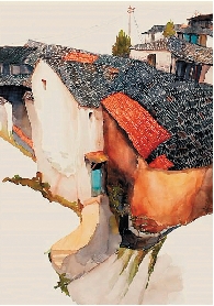 韦青作 小村绿意 53×73cm 水彩