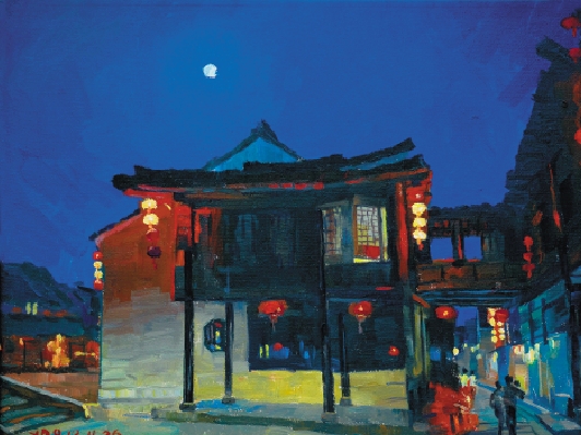 姚剑波 西塘夜晚 30×40cm 2013年
