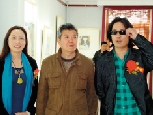 学术主持杨声老师(右一)与著名山水画家王界山教授(中)、策展人陈桂芳女士(左一)在展览现场