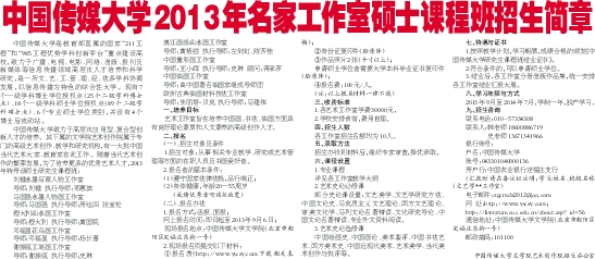 中国传媒大学2013年名家工作室硕士课程班招生简章