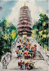 屠维能(云南曲靖) 靖宁宝塔 水彩画