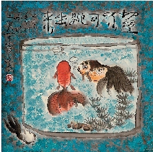 金鱼图安逸,便进缸里游。虽不愁吃喝,却得任摆布。永远长不大,终生没自由。若想跃龙门,小命要呜呼! 宋祝平