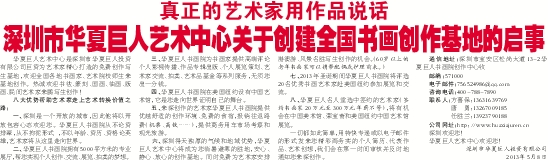 深圳市华夏巨人艺术中心关于创建全国书画创作基地的启事