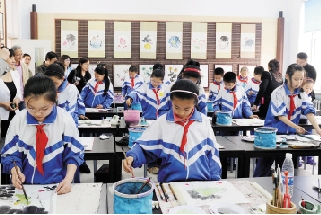 嘉宾参观园丁小学的国画课堂