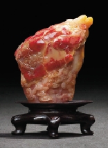 巴林黄冻鸡血石“龙凤呈祥”摆件 3.5×11×12cm
