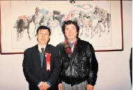 王伟和他的老师刘大为主席在画展上留影