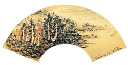 陈廷友 秋江帆影 46×22cm 扇面