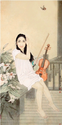 梁波 工笔人物 132×65cm
