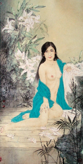 梁波 工笔人物 132×65cm