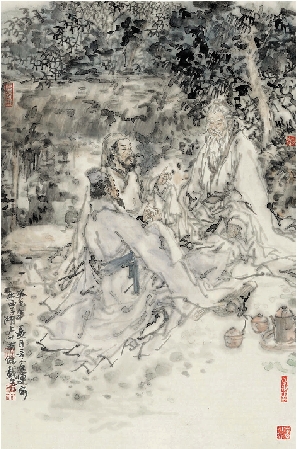 董文运 友朋远至图 45×68cm