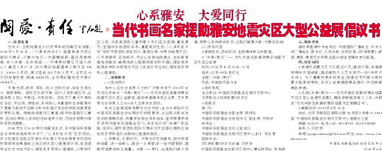 当代书画名家援助雅安地震灾区大型公益展倡议书