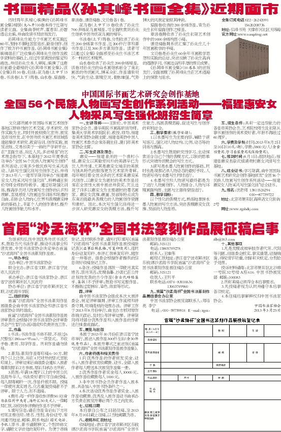 收稿地址:浙江省宁波市鄞州区东钱湖沙孟海书学院首届“沙孟海杯”全国书法篆刻作品展征稿办公室