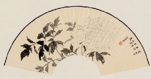 熊广琴 牡丹 扇长60cm 纸本水墨 2010年