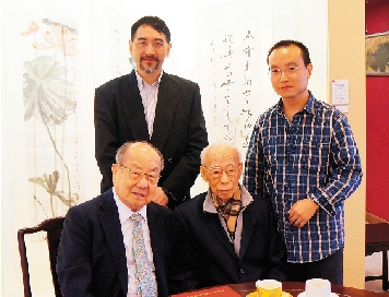 饶宗颐先生(右二)、陈伟南会长(左一)、郑炜明主任(左二)与邵晓峰教授(右一)合影