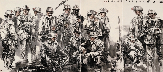 张生进 矿工图 180×392cm