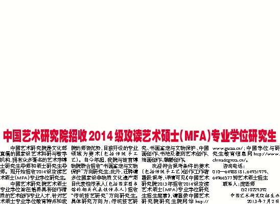 中国艺术研究院招收2014级攻读艺术硕士(MFA)专业学位研究生
