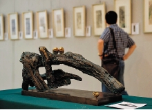 7月1日,为庆祝香港回归祖国十六周年,由中国文联、全国政协书画室、中国美术家协会联合主办的“中国画·书法·雕塑艺术展”在全国政协礼堂开展。展出萧晖荣200余件中国画、书法和雕塑作品。 (李鑫)