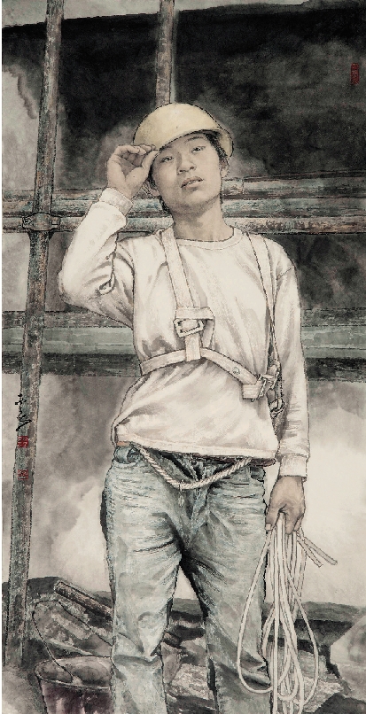 彭西春 民工(之二) 136×68cm
