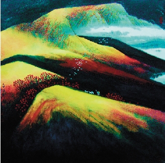 何仁诰 金风瘦水碧 银霜染树红 68×68cm 纸本设色