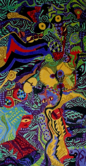 孙甲平 猫神 68×136cm 重彩