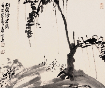王赞 柳荫读书图 34×40cm 国画