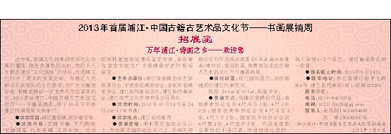 2013年首届浦江·中国古籍古艺术品文化节——书画展销周