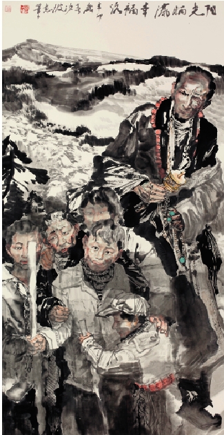 袁汝波 阳光洒满幸福路 70×140cm 2009年