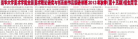 清华大学美术学院全国美术理论研究与书画创作高级研修班2013年秋季(第十五期)招生简章