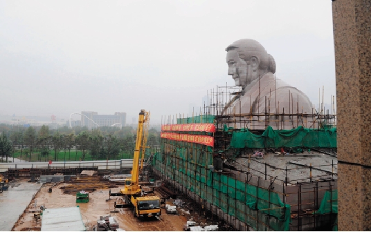 图为2011年11月7日在河南省郑州市郑东新区拍摄的“宋庆龄艺术雕像”,雕像坐落于河南省宋庆龄基金会青少年儿童活动中心南广场。2013年,体量巨大、耗资惊人的雕像未完工即遭拆除。 赵鹏/摄