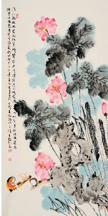 白光 涉江玩秋水 爱此红渠鲜 138×68cm
