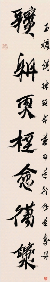 刘正成 峒山道符行书七言联 纸本 180×32cm×2