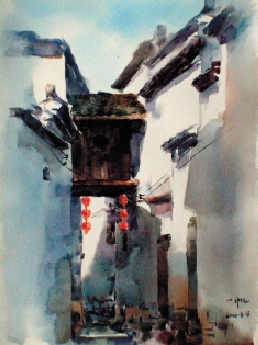 杨一帆(浙江建德) 新叶古巷 水彩写生