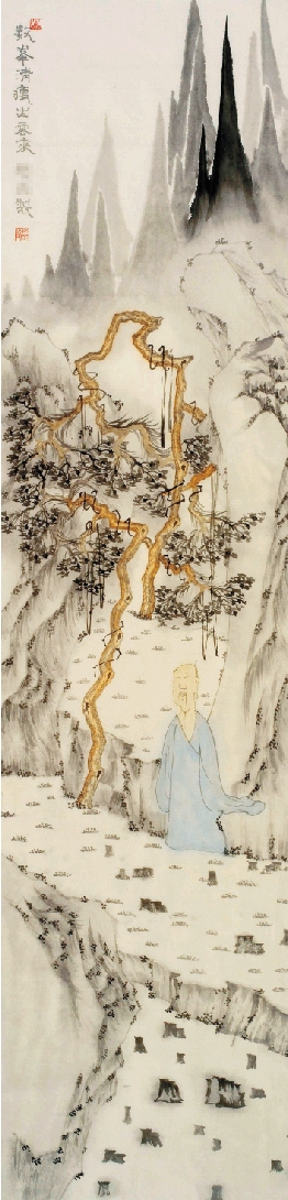 右图:编号081010 数峰清瘦出云来 140×35cm 国画