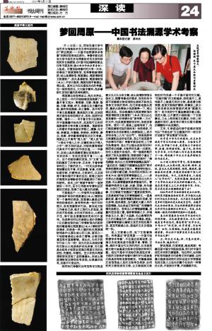 7月28日至31日,西安交通大学书法艺术与信息技术交叉学科研究所主办的“梦回周原——中国书法溯源学术考察”在陕西宝鸡地区进行。考察专家由西安大学书法艺术与信息技术交叉学科研究所所长杨锁强、《中国书法》编辑部副主任朱中原及我(兼以西泠印社社员身份)3人组成。尽管实际考察时间只有一天半,却参观了周原博物馆、宝鸡青铜器博物院、岐山县博物馆、周原遗址、周原博物馆文物复制厂、扶风县博物馆、周原博物馆(岐山)、中华石鼓阁、周原凤雏甲骨遗址、周公庙。原本以为仅仅是观光式的考察,但一路所闻所见,大大超乎意料,很多事物引发我沉重的思考和感叹。