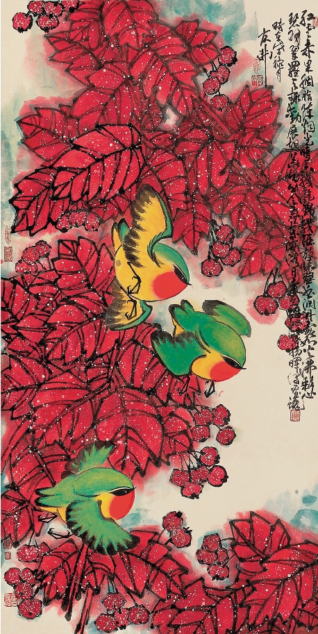 京开 红叶翠鸟 136×68cm 2008年 纸本