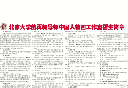 1.北京大学中国画导师工作室研究生课程班/高级研修班是北京大学正式批准的以导师工作室形式面向当代中国画家开展中国画教育培训的班级。