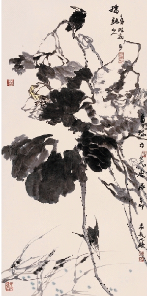 郭志光 疏雨乱风荷 136×68cm 2011年