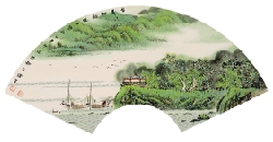 徐贤 长夏村越风日清 扇画
