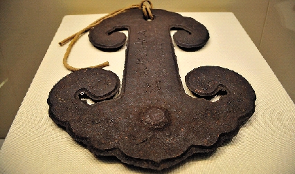 | “盛京遗珍——沈阳故宫博物院院藏珍宝展”于8月29日开展,展品包括努尔哈赤御用宝剑、皇太极御用腰刀、后金天命云板、清雍正款青花红龙大盘、清王翚等人绘制的《设色康熙南巡图卷》、清乾隆款嵌珐琅缠枝花卉钵等6件“镇馆之宝”。图为后金天命云板。 张文魁 |